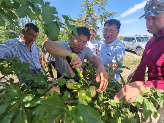 出访期间,团队赴当地不同果树种植区,围绕李树、杏树、梨树等多种果树的栽培管理及病虫害防控开展系统性现场指导,为果农提供切实可行的“中国方案”。团队在田园牧业苹果园区组织培训面向50余名农业技术人员的农业培训,深入讲授果树栽培与幼树管理等专题,实用性强,获得一致好评。此外,双方还签署了一系列果树技术指导合作协议,内容涵盖栽培管理、品种改良和病虫害防控等领域,为今后长期稳定的技术交流与协作奠定坚实基础。