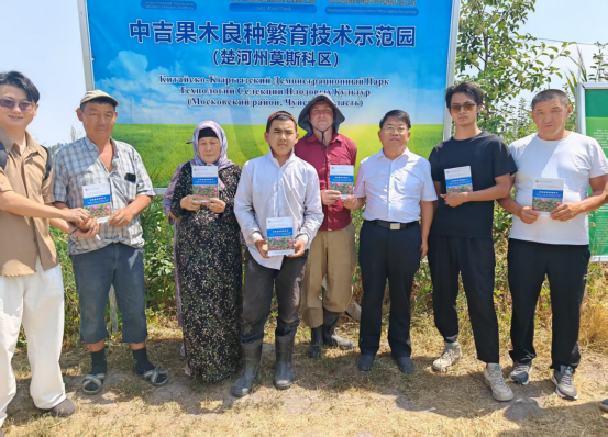 访问期间,马文哲与李务焜在吉尔吉斯斯坦比什凯克田园牧业公司苹果农业园区,开展实地调研与技术评估,全面了解了当地苹果产业在栽培技术、生产规模、品种选育及病虫害防治等方面的现状。团队针对疏花疏果这一关键环节,为30余名当地农业技术人员开展专题培训,通过理论与现场实操相结合的方式,有效提升参训人员的农业技能水平。培训期间,两位教师还向当地赠送由我校编印的《苹果栽培管理技术指导手册》,系统介绍我国先进管理经验与技术规范,受到广泛欢迎。