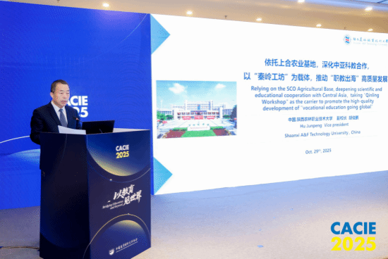 29日下午,在 “中国—中亚职业教育合作研讨会暨中国—中亚产教融合联盟2025年会”上,副校长胡俊鹏进行了我校中亚合作案例分享,以“依托上合农业基地,深化中亚科教合作,以“秦岭工坊”为载体,推动“职教出海”高质量发展”为主题,向国内外嘉宾介绍了我校与中亚国家在专业及课程标准分享、现代农业技术培训、国际学生培养等方面的国际合作成果。国际处处长杨雪霁在“教随产出,校企同行:构建“双智”国际人才培养新生态”论坛圆桌对话环节,介绍了学校国际合作基本情况,并陈述在国际合作背景下校企要互相“借力、发力、合力”开展密切合作,相互赋能,以“秦岭工坊”项目为抓手,通过“引融联建享”的方式破冰国际合作困境,提高校企国际合作效率。
