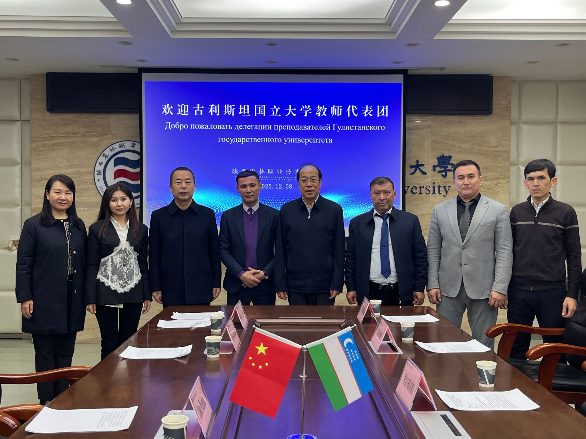 12月14日,乌兹别克斯坦古利斯坦国立大学5名教师代表团在我校为期7天的技术交流访问活动圆满落幕。校长仲伟周、副校长胡俊鹏及国际处领导接待了代表团。
