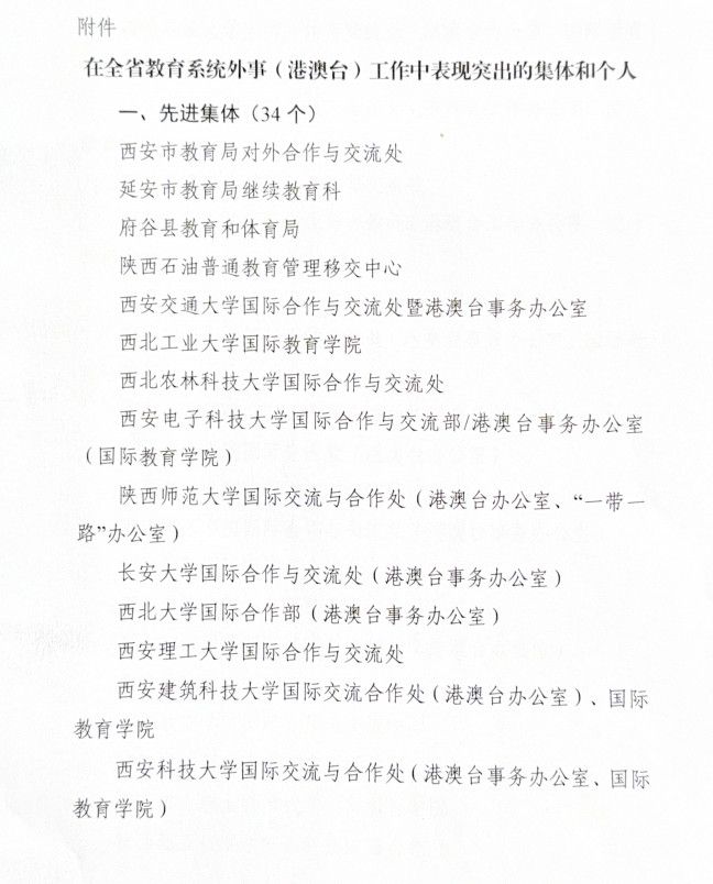 会上,陕西教育国际交流协会对2025年度全省教育系统外事(港澳台)工作先进集体和先进个人进行了表彰,我校获评“陕西教育系统外事(港澳台)工作先进单位”。