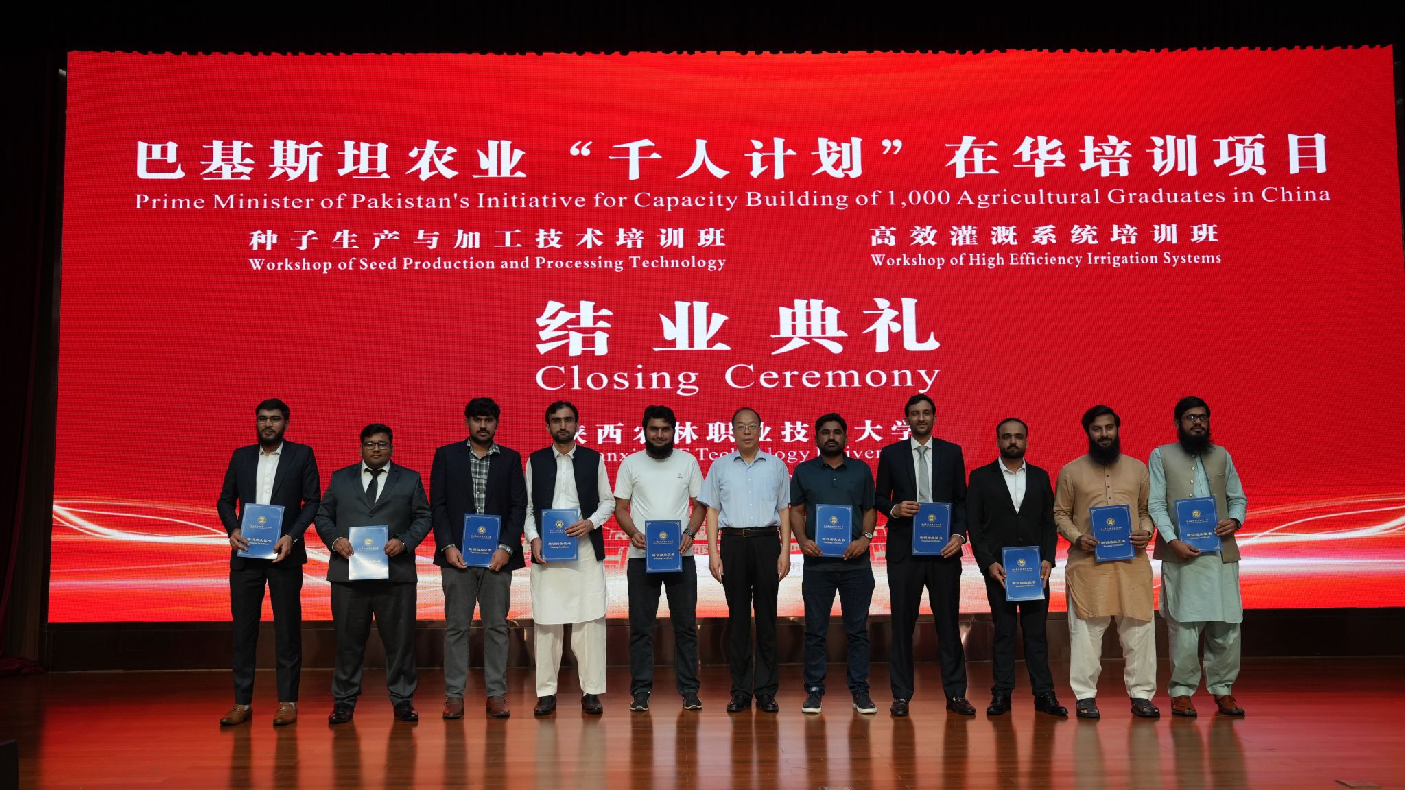 7月17日,巴基斯坦农业“千人计划”在华培训项目结业典礼在我校举行,该项目高效灌溉系统”“种子生产加工技术”2个专业培训班98名学员顺利结业。巴基斯坦驻华大使卡里尔·哈什米,省外办副主任高进孝,我校校长仲伟周副校长蒋平江省外办省教育厅外事处杨凌示范区国际局杨凌国际会展中心酒店相关负责人以及我校相关部门负责人教师代表等参加结业典礼