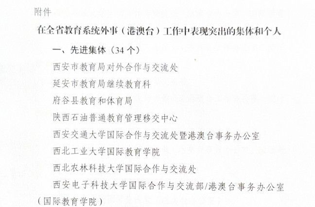 此次荣誉是对我校外事工作的充分肯定。学校将以此为契机,持续深化对外交流合作,拓展合作领域、提升学校国际化办学水平,为学校和陕西教育对外开放贡献更大力量。