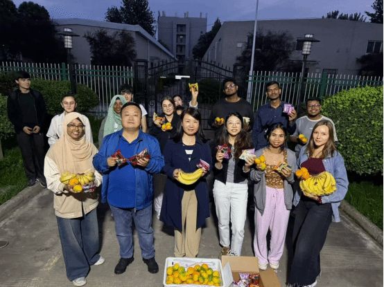 2025年中秋佳节之际,国际学院院长杨雪霁偕同国际学院相关教师,看望假期留校外籍师生并送上了节日的问候与祝福。